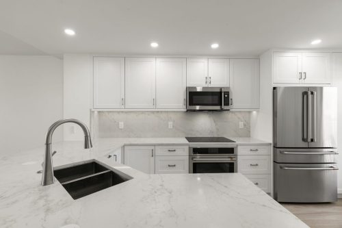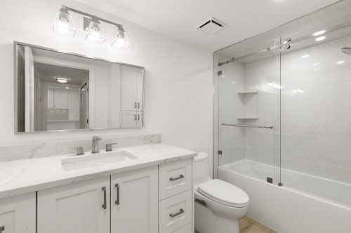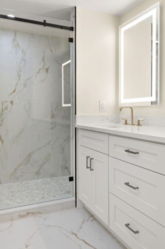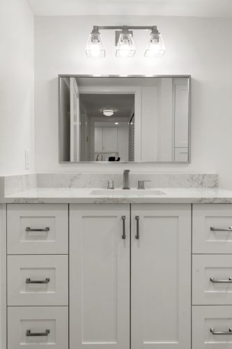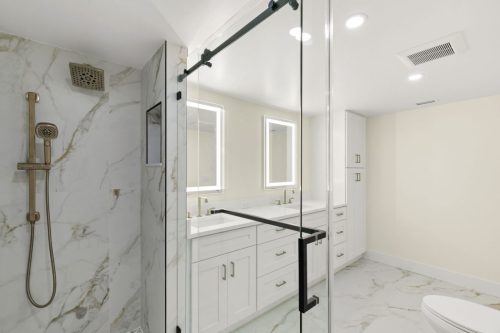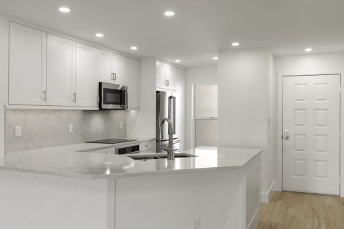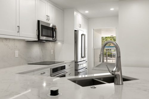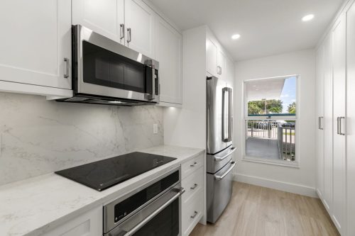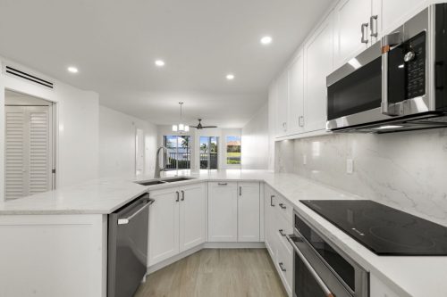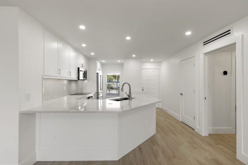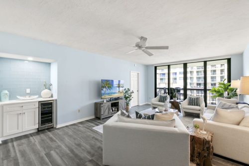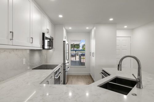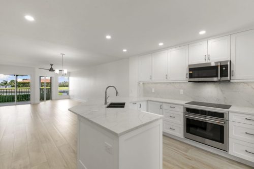 The Grand Bay Remodel showcases a complete transformation of a Marco Island condominium, redefining luxury coastal living through clean design and practical elegance. Our team at Marco Island Contracting Group reimagined the interior layout to create a bright, open-concept living environment, enhanced by soft neutral tones and warm wood details. This full remodel includes a contemporary kitchen with quartz countertops, custom white cabinetry, and stainless-steel appliances. The main living area was designed with continuity in mind, featuring wide-plank flooring that flows seamlessly into every room. Bathrooms were rebuilt with frameless glass showers, natural tile textures, and built-in wood shelving, combining comfort with sophistication.